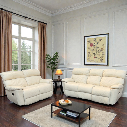Excellent Condition 3+2 Seater Sofa Set- Recliners - Light Cream Leather