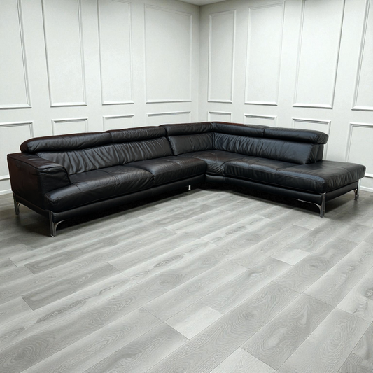 Dfs Full Genuine Black Leather Corner Sofa | RRP over £3000