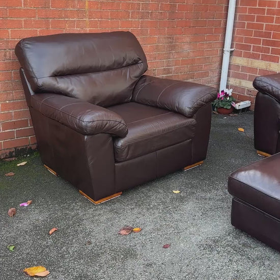 Brown Leather 3+1 Seater Sofa Set with Footrest