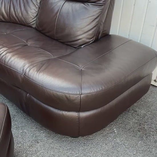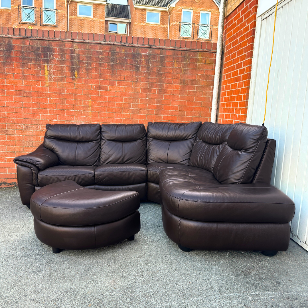 DFS Brown Leather 5/6 Seater Corner Sofa & Footstool - Excellent Condition