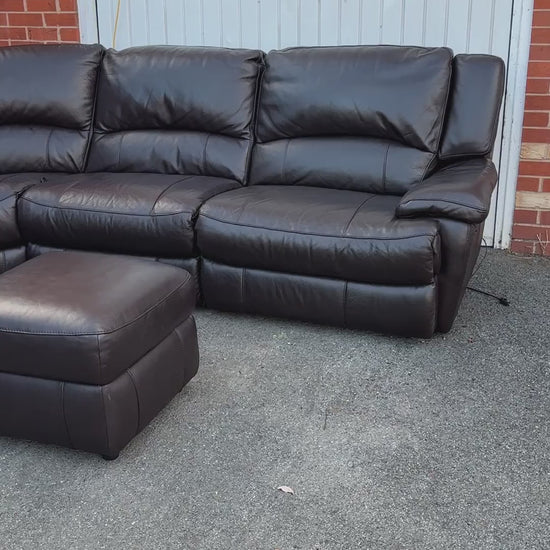 DFS Brown Leather 6/7 Seater Corner Sofa & Footstool - Electric Recliner