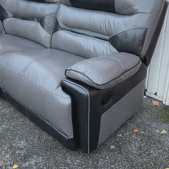 Two Tone 3 & 2 Seater Recliners Sofa Set - Dark Grey / Black Leather (DFS)
