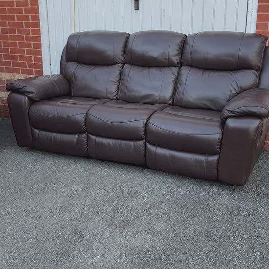 DFS Ex-Display-Never Used! 3+2+1 Seater Sofa Suite - Manual Recliners in Genuine Brown Leather