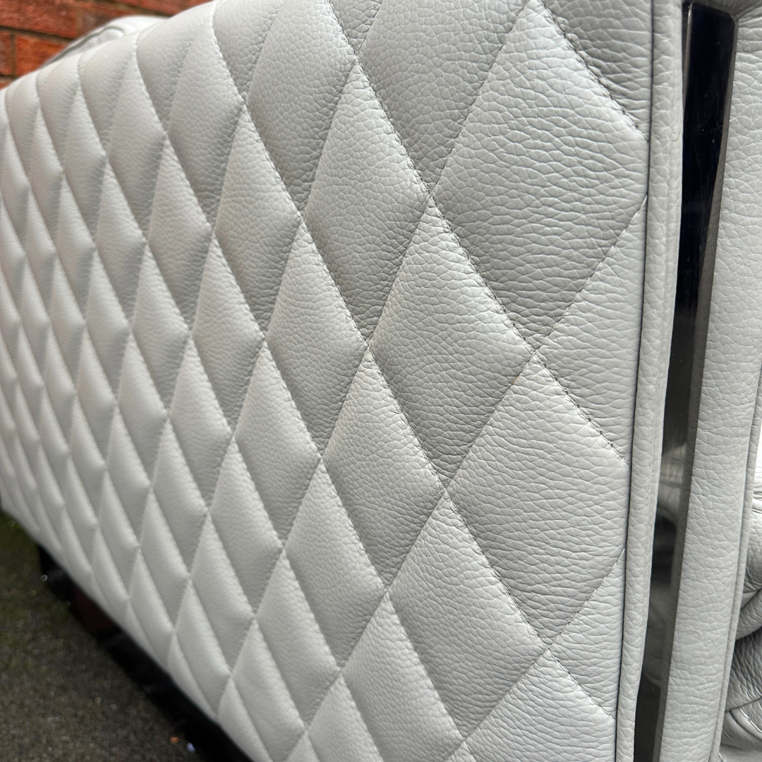 Excellent Condition Sofology 3 Seater Electric Recliner & Adjustable Headrest in Genuine Light Grey/Ivory Leather