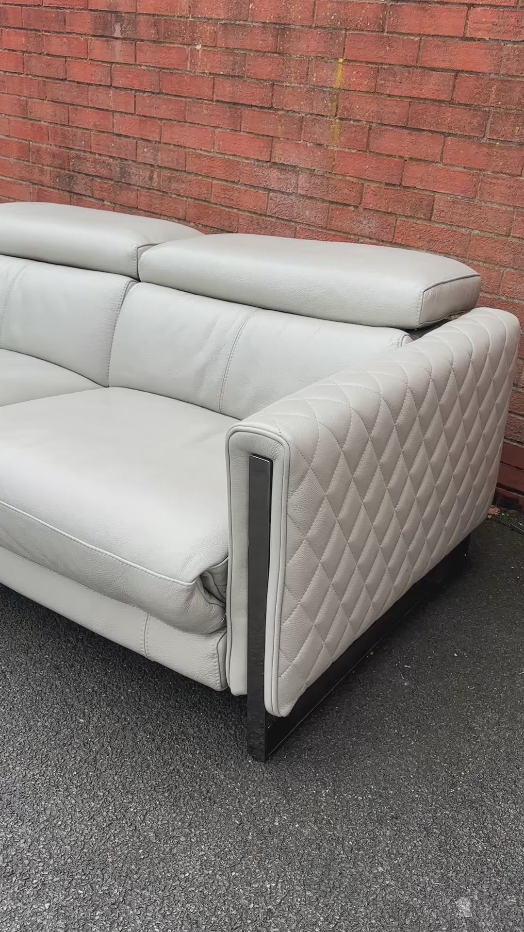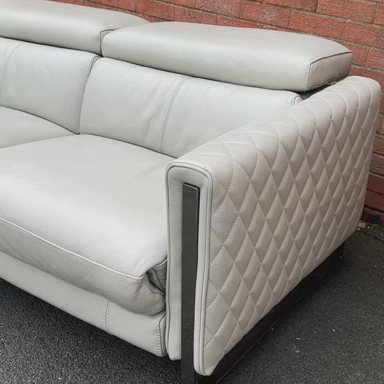 Ex-Display Alvaro Genuine Grey Leather 3 Seater Power Recliner Sofa (Sofology)